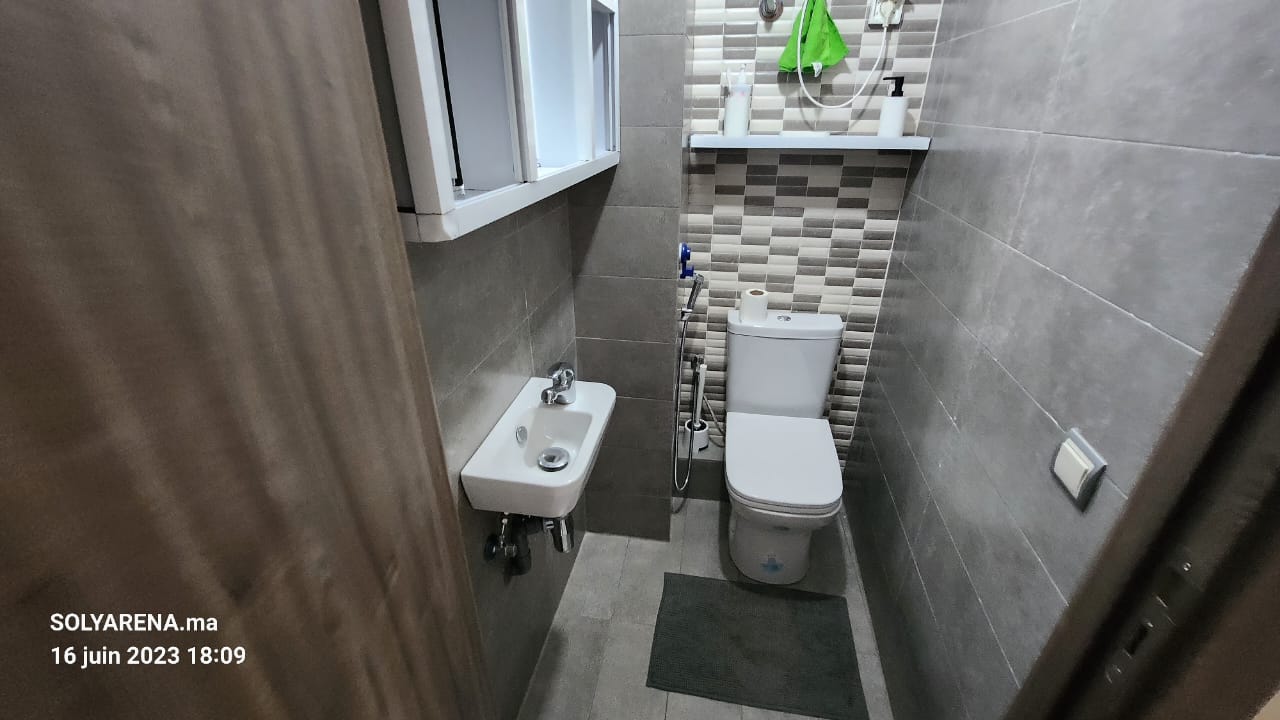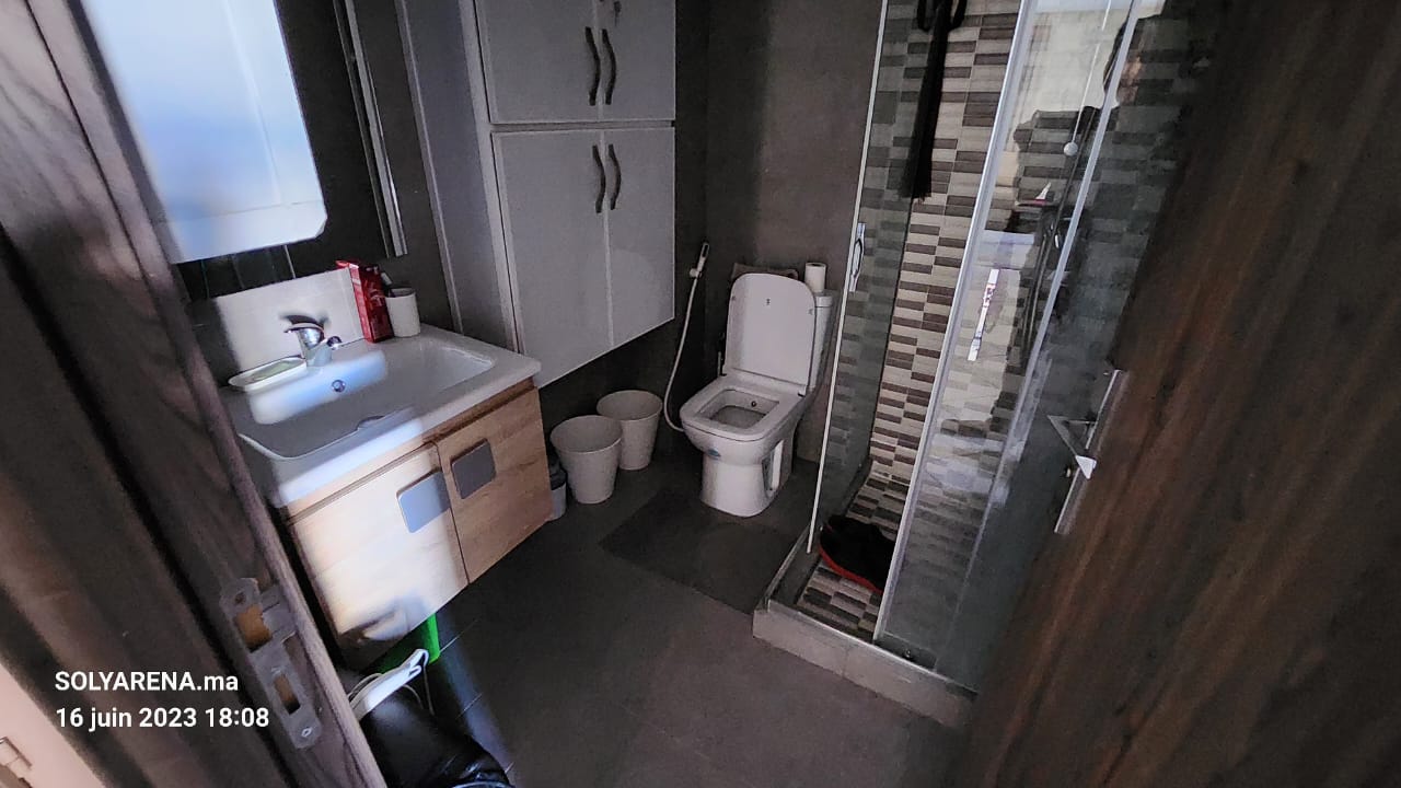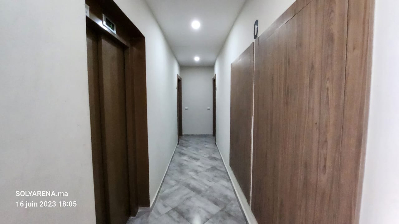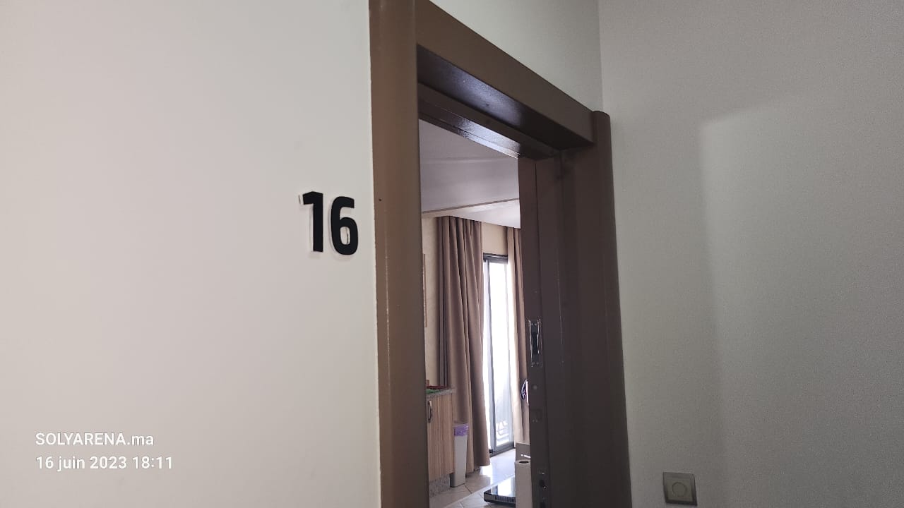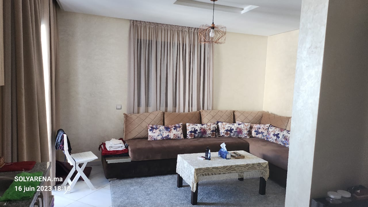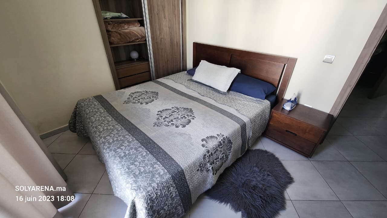 appartement de deux chambres salon un salle de bain cuisine équipée et terrasse situé a 3eme étage dans un résidence fermé calme et sécurisé avec un grand piscine en plus des jardins les espaces jeux pour enfants