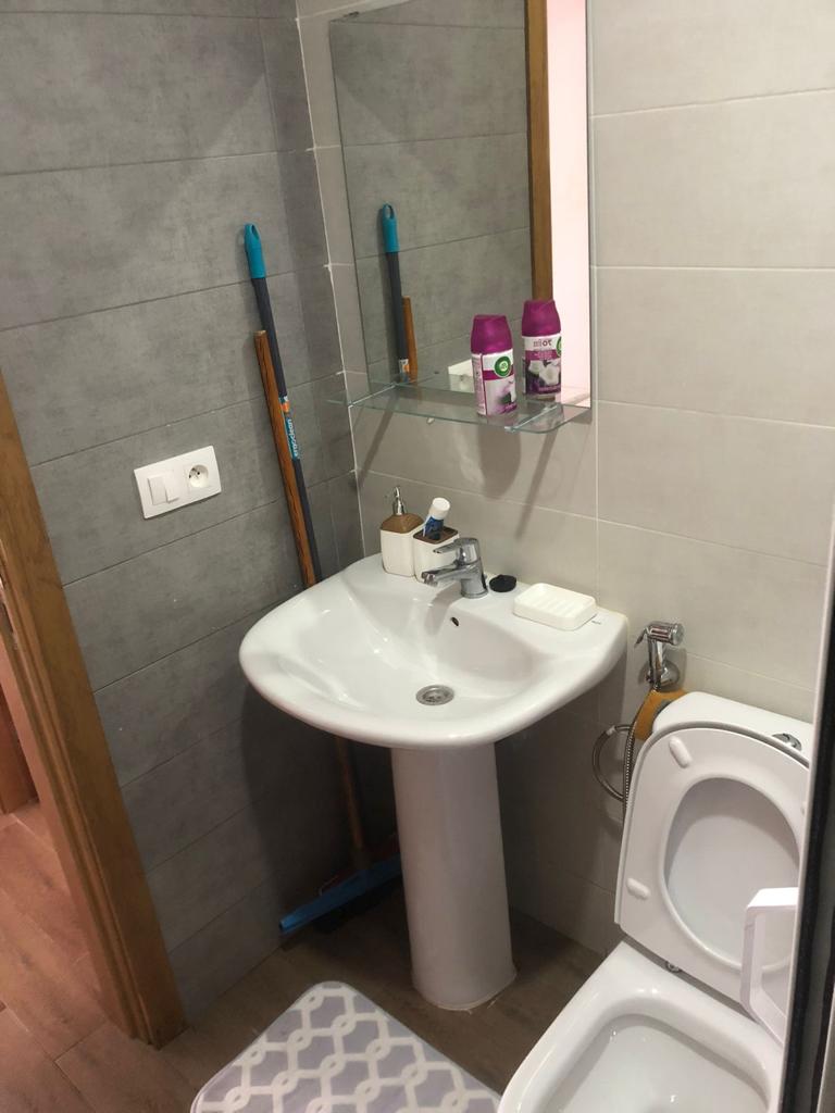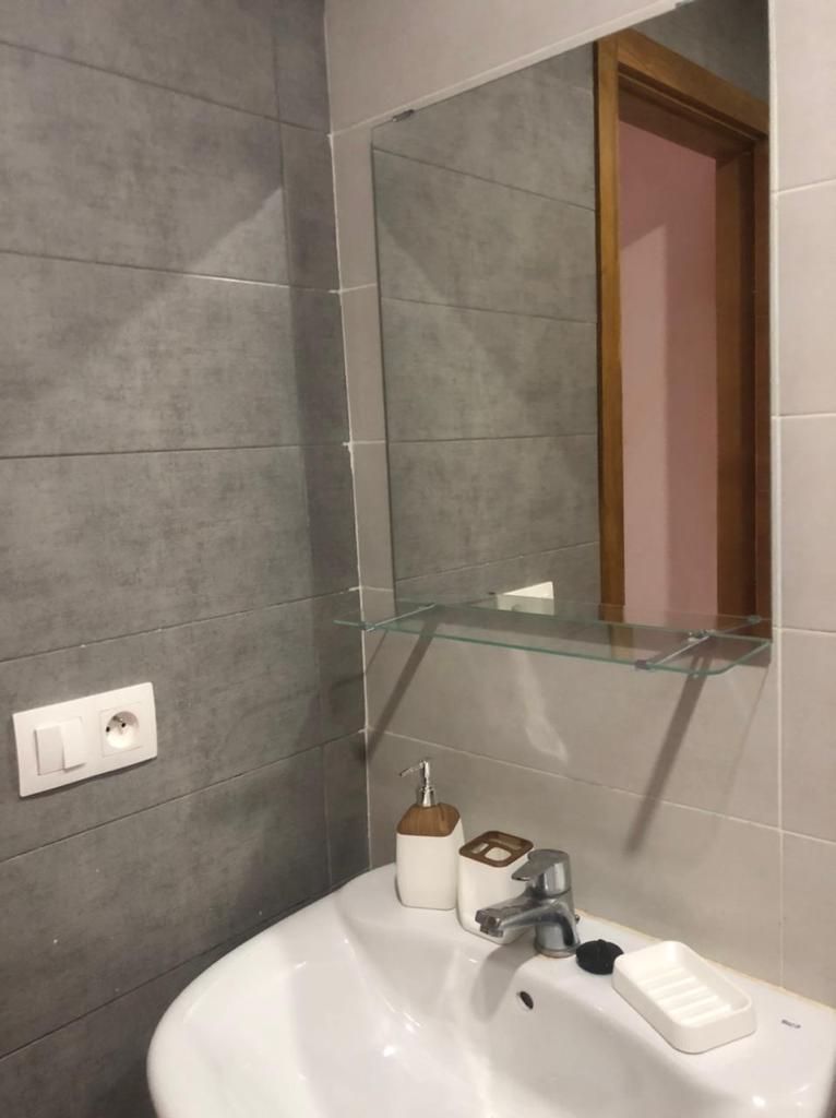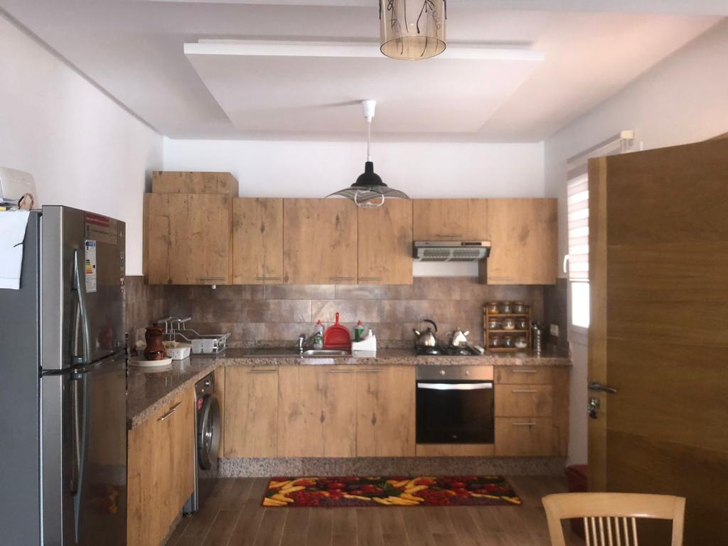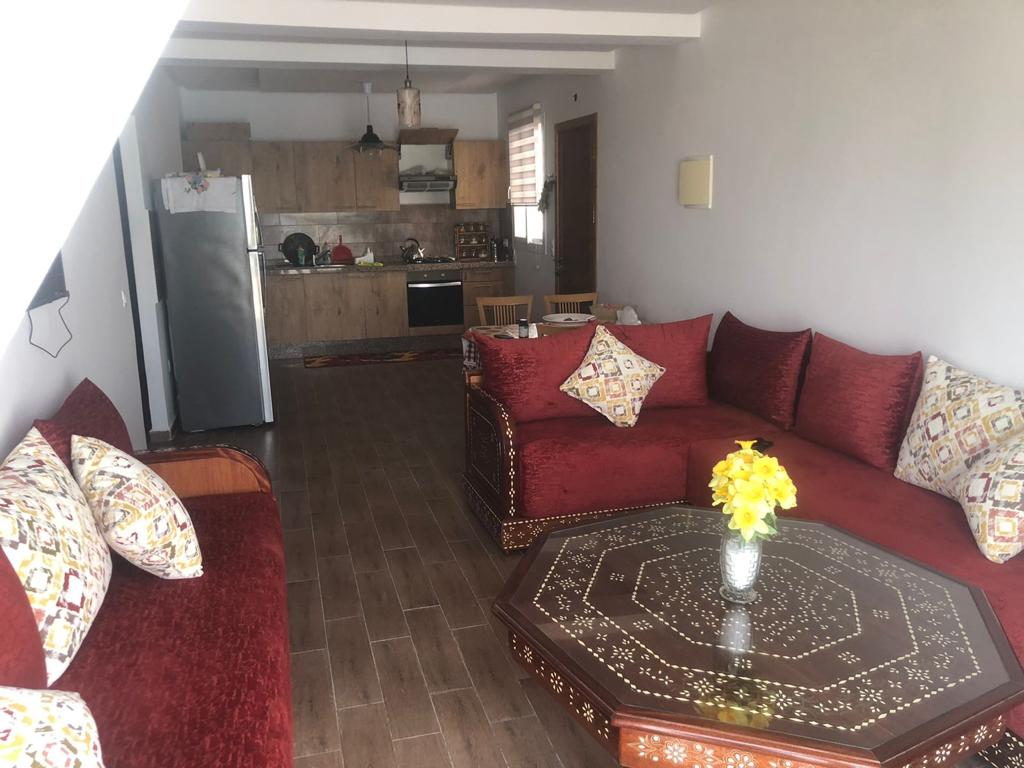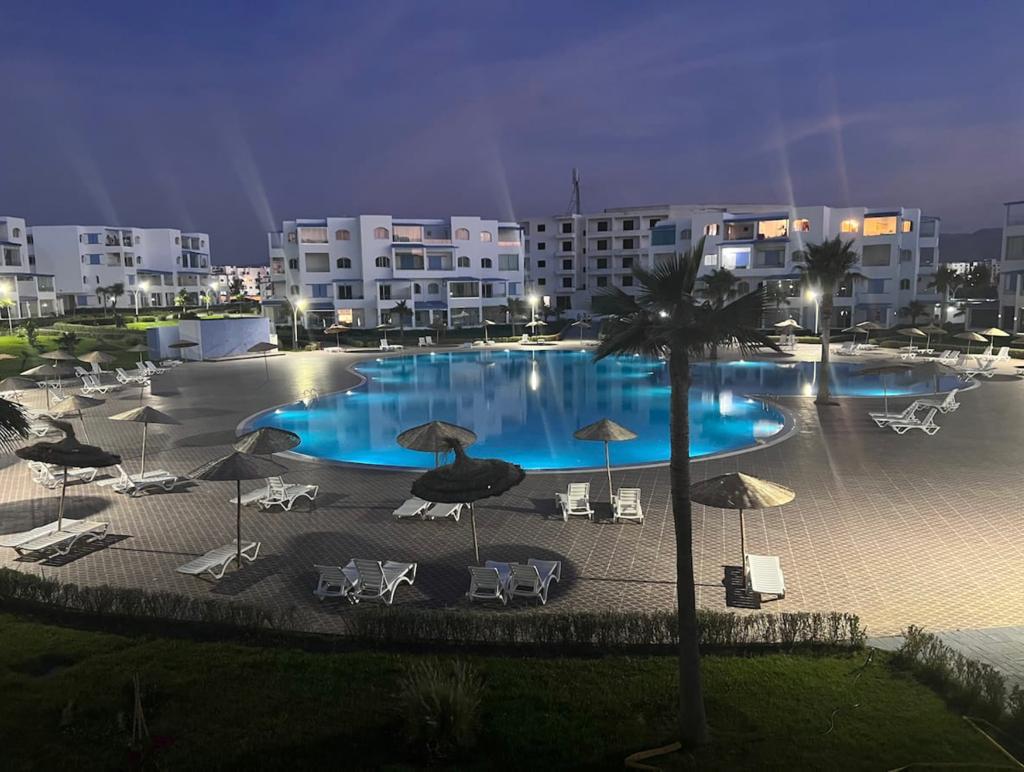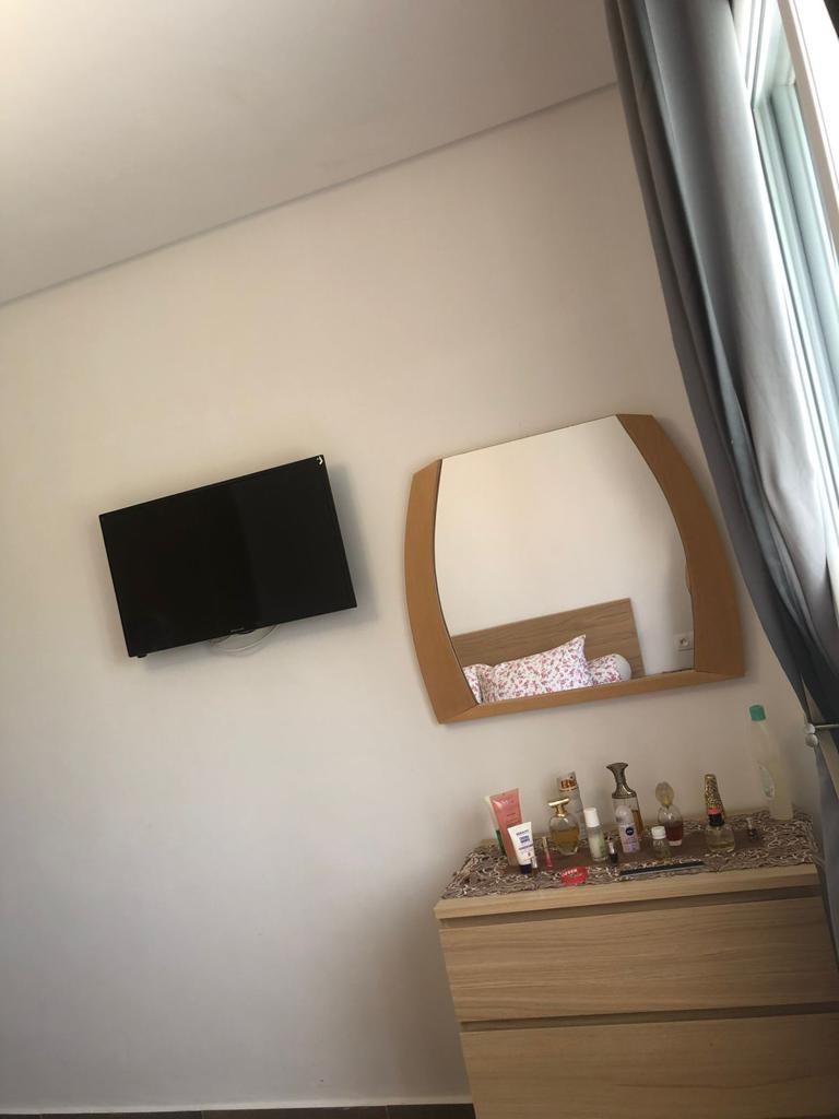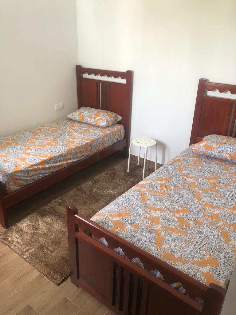 Appartement situé à résidence mirador golf 2 à Station balnéaire touristique cabo negro il se compose de deux chambres un chambre parentale avec un grand lits pour deux personnes , un placard , et un chambre pour les enfants équipée de deux lits simple, un placard , un salle de bain équipée de sanitaire céramique , un salon moderne de trois canapé très confortable , tv , un sala manger de table et4 chaises , cuisine American équipée du équipements nécessaire comme :
